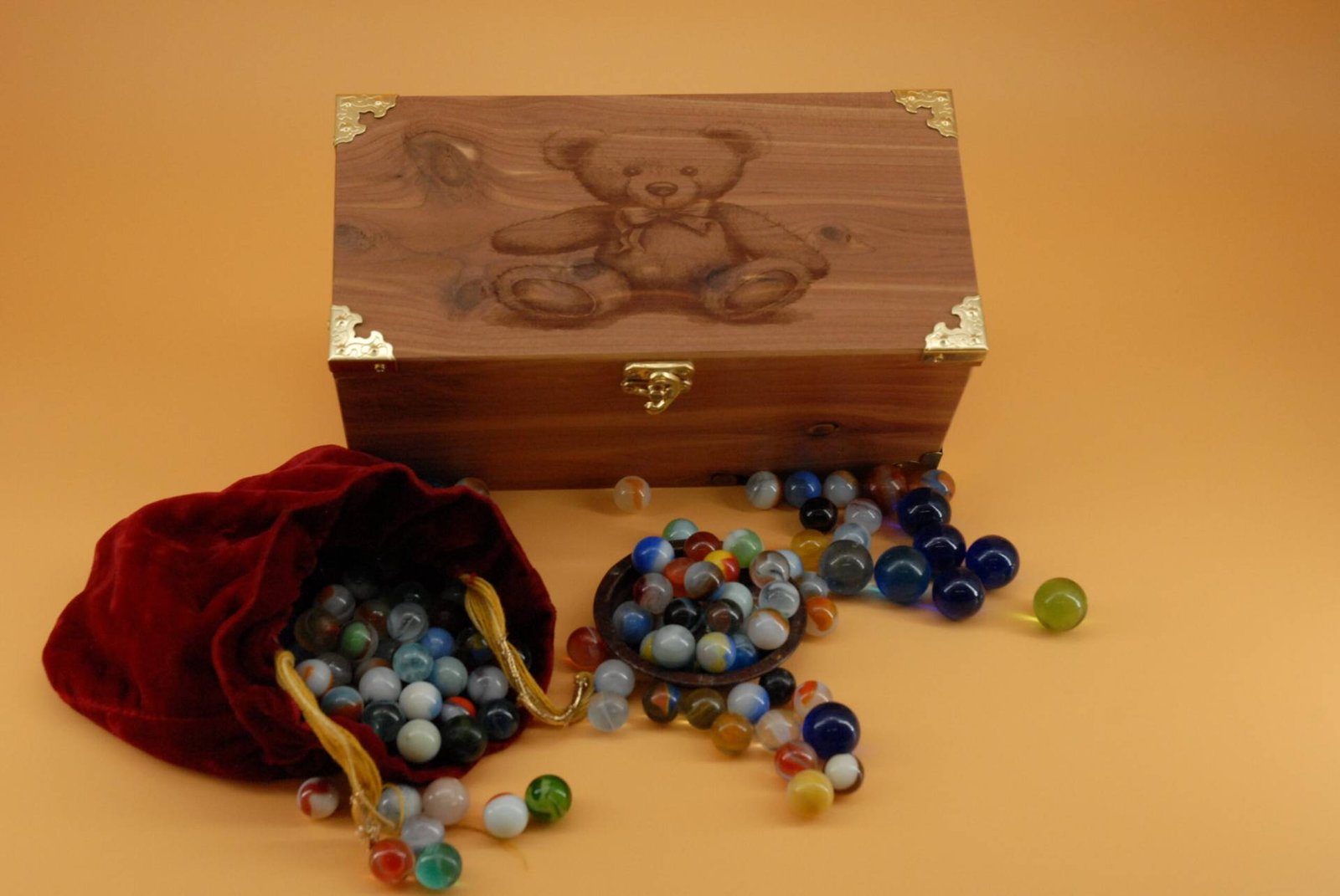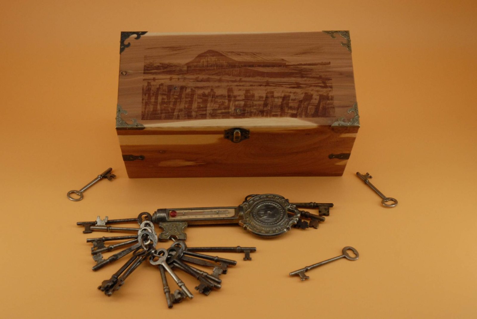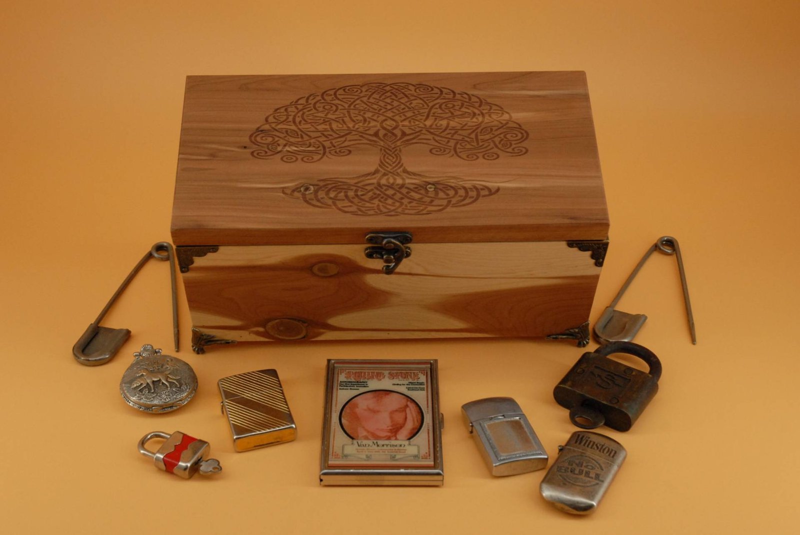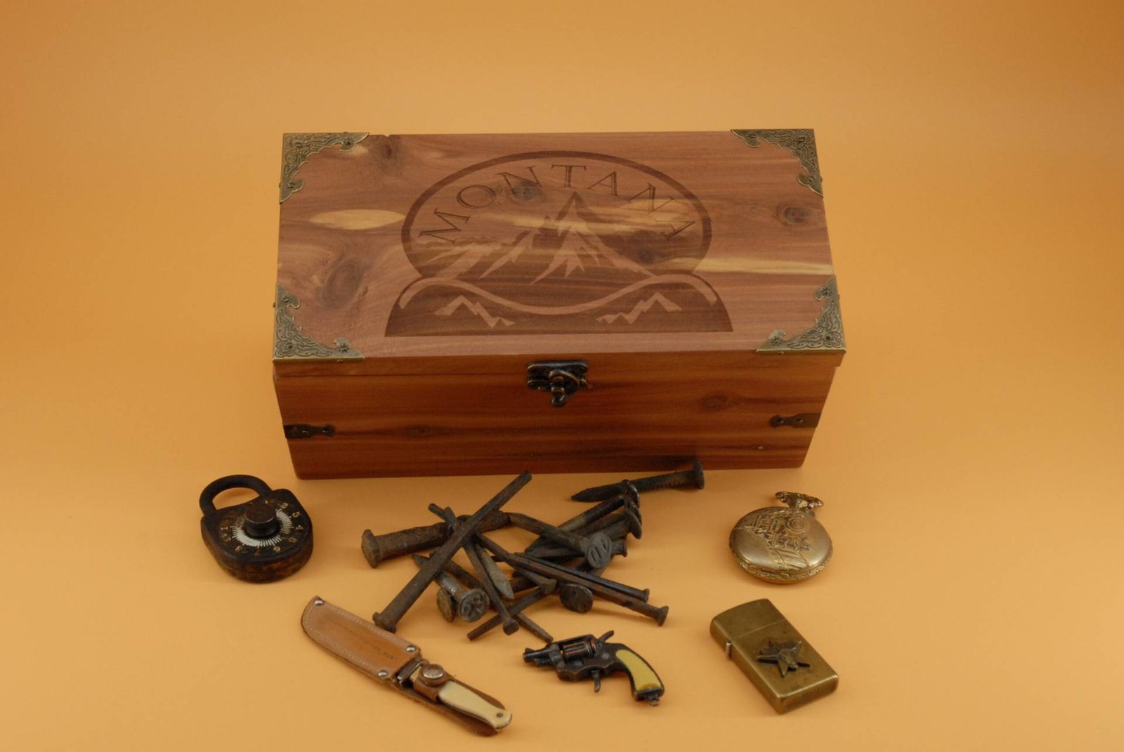 The wood is cut, sanded, and assembled by hand using traditional techniques. We finish each chest with specially selected hardware. Because of this organic process, every box is unique; no two are ever exactly alike.