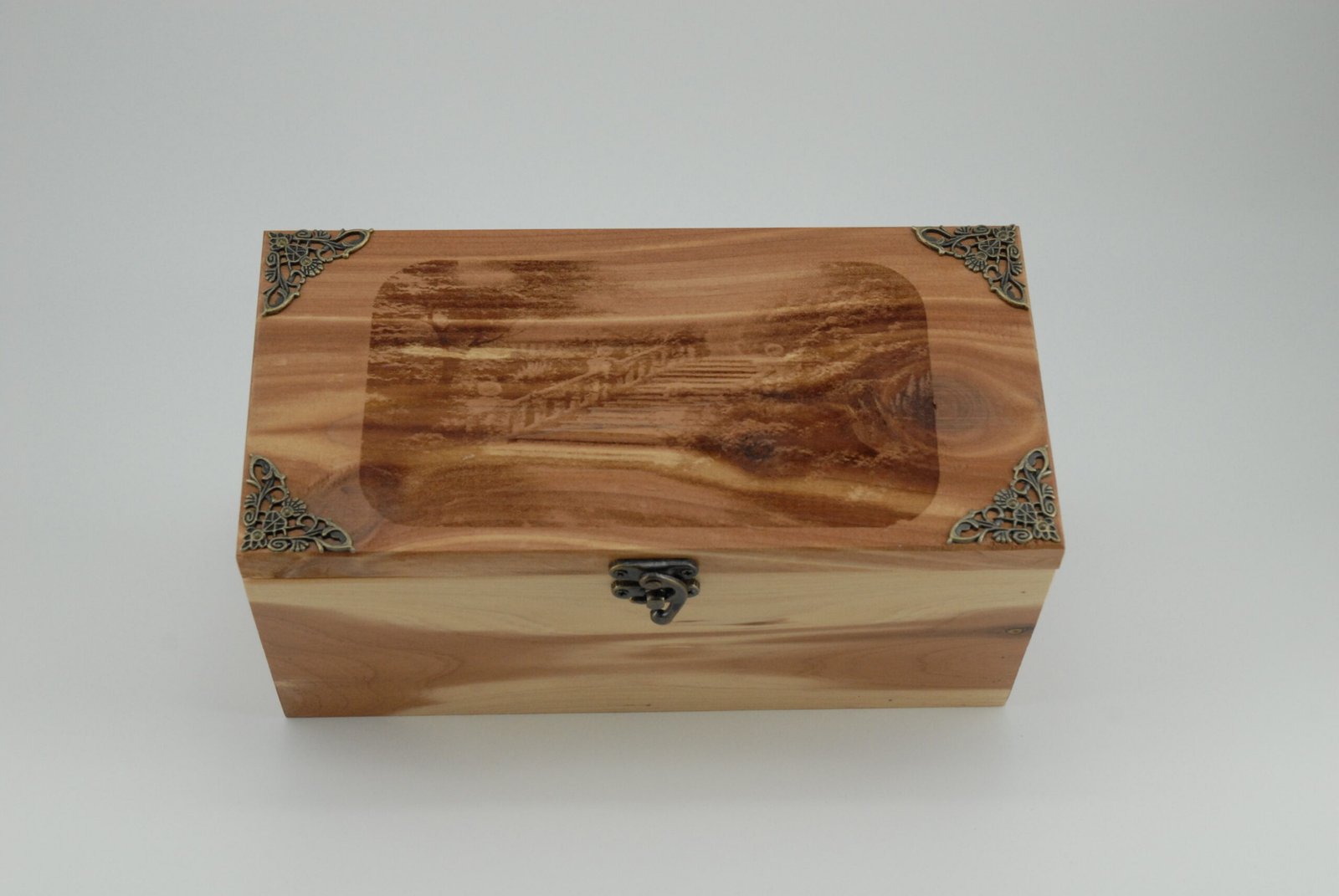 Handcrafted Wooden Treasure Box with Rustic Bridge Engraving – b2503049