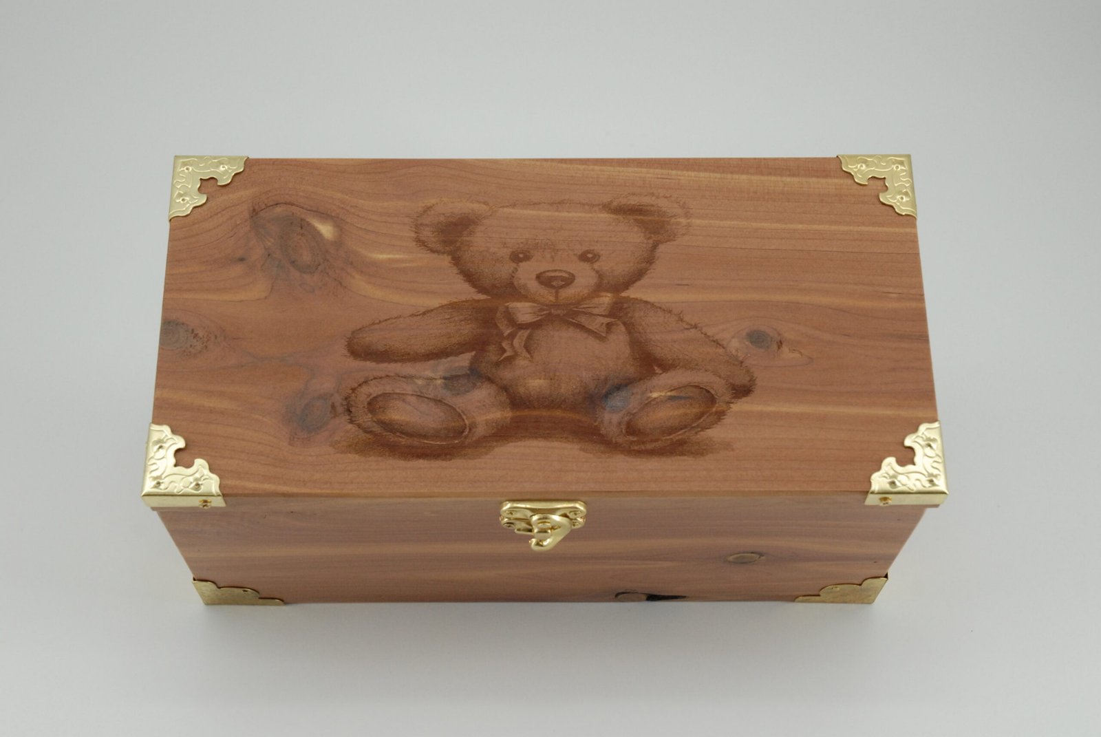 Handcrafted Wooden Treasure Box with Teddy Bear Engraving – b2503046