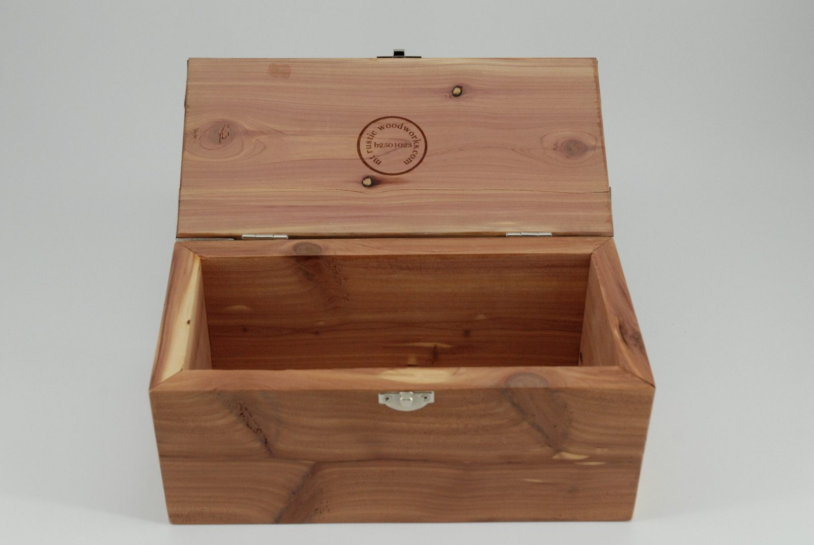 Handcrafted cedar storage box with engraved tree design